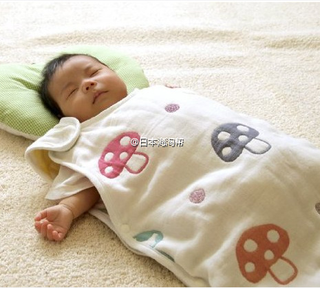 【Hoppetta 7225 蘑菇图案 六层纱布婴儿睡袋】使用六层不同的纱布材质, 吸汗干爽, 材质非常柔软舒适, 一年四季都能使用。让宝宝不容易流汗长湿疹。 258元,prime会员免运费。 点此购买