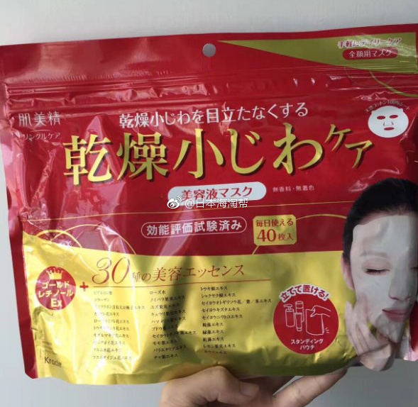 【肌美精 抗干纹面膜 40片】每份含有40张,富含30种美容精华液,能够增强皮肤弹性,修护眼角四周、嘴巴四周的细小皱纹,可天天使用,提升整个脸部的皮肤。40.76元prime会员满200元免邮。点此购买