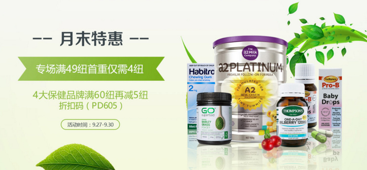 专场满49纽首重仅需4纽,4大保健品牌满60纽再减5纽,折扣码:PD605.