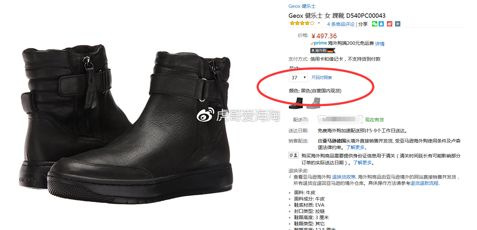 #亚马逊海外购#德亚直邮:Geox 健乐士 D540PC00043 女士踝靴37码会员免邮¥497.36+¥59.19税费直邮中国(约¥557)鞋面采用牛皮材质,皮质柔软,舒适透气。内外侧均带有拉链设计,方便穿脱。EVA大底,3cm厚度,脚感轻便,防滑耐磨。鞋跟处带有品牌logo。整体款式偏日常休闲。点击购买