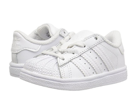 #美亚#限尺码:adidas 阿迪达斯 Originals Superstar 大童款休闲鞋纯白色 $44.3(约¥360)纯白配色,记忆鞋垫,EVA中底,脚感舒适,极简范儿十足。点击购买