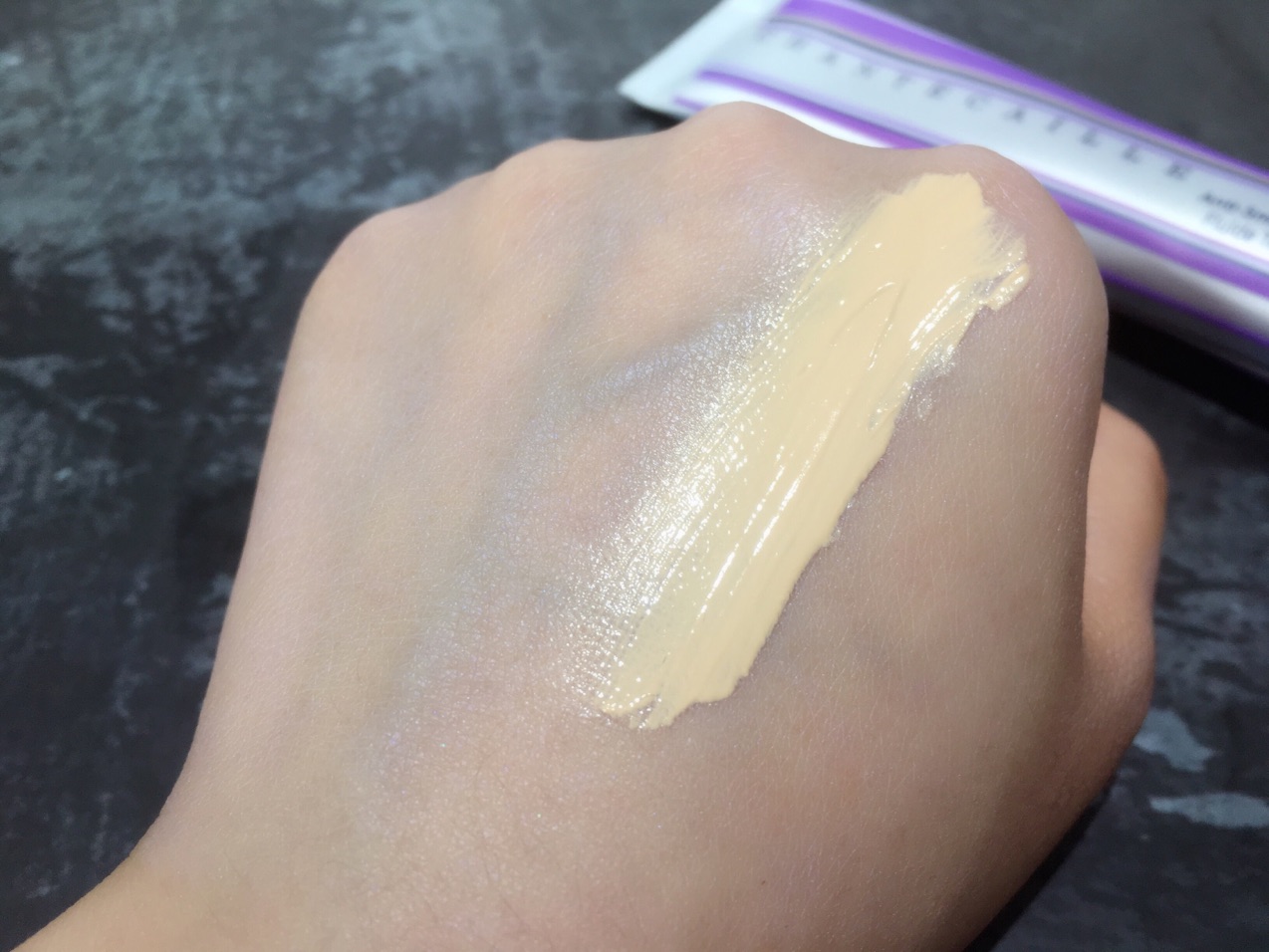 因为这个毕竟是隔离,所以遮瑕的效果几乎为零。还有就是香缇卡的隔离有三个管,除了这个紫管的,还有黄管和白管的,功能不同,大家可以参考着买。紫管也是分色号,因为帮主本身皮肤不黄,所以就入手了这个最白的Alabaster,上脸颜色不会死白,很自然的象牙白色,完全戳中帮主我的心~