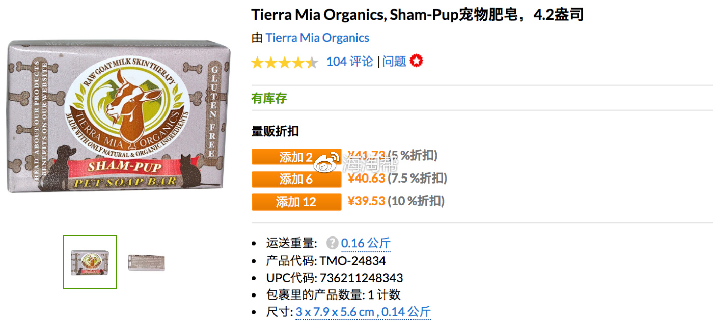 9.Tierra Mia Organics, Sham-Pup宠物肥皂,4.2盎司,参考价格:43.93