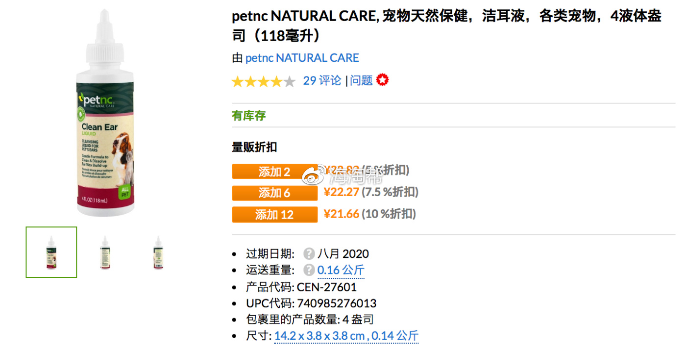 宠物天然保健,洁耳液,各类宠物,4液体盎司(118毫升),参考价格:24.06
