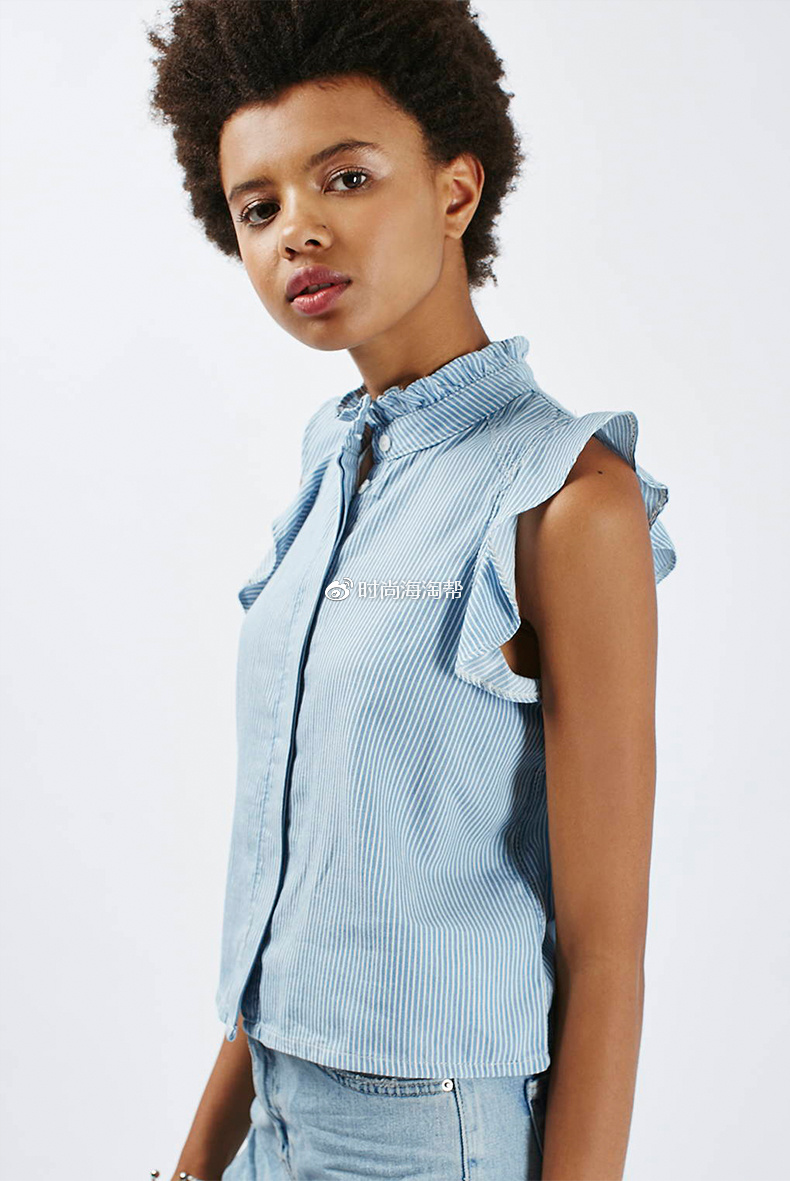 TOPSHOP 女士条纹花边无袖衬衫,99元(原价369元),优惠随时可能失效。100% 纯棉材质,柔软舒适,轻薄透气,花边圆领,经典的条纹印花,袖部的花边装饰更加俏皮可爱,设计感十足,时尚百搭。库存较少,喜欢的妹子可以入手。先领券☞点此进入 再购买☞点此进入
