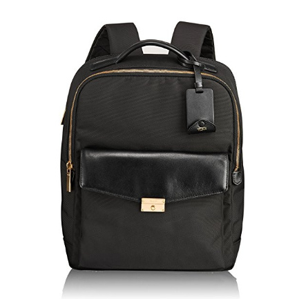 【德亚直邮】TUMI 73670 女士时尚双肩包,经典黑色尼龙材质,防水出色,金色五金,更显奢华低调,前袋暗扣设计,附有贴心钥匙扣袋,方便放置随身小物,多层口袋设计。