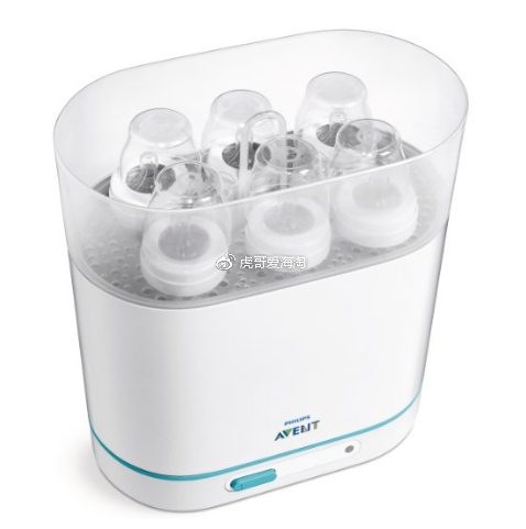 美亚【Philips AVENT 新安怡 3合1电子蒸汽消毒锅】能够安全可靠的消毒宝宝所有的喂哺用具,仅需6分钟即可消灭99.9%的细菌。可调节3种配置:小号用于消毒奶嘴,中号用于消毒吸奶器和刀叉,大号可消毒6个奶瓶。不含BPA,消毒完成后可自动关机。点击购买