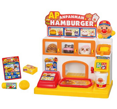 (3)面包超人汉堡店 仿真音乐扮家家玩具组合,完美重现了小朋友前去买汉堡的流程,从点单到制作到付钱,每一步都逼真有趣。仿真的面包、芝士片、薯条放在货架里,根据菜单进行点单,模具中注入水还能营造出自动给饮料的效果,配合3节干电池工作,伴随音乐声让快乐无穷放大。