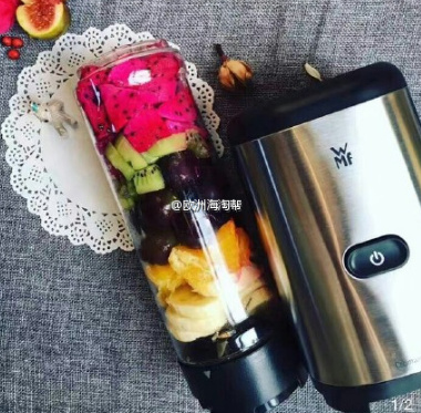 【WMF 福腾宝Mix & Go随身便携榨汁机】 特价49.99€(¥366) 给宝宝添辅食,给家人榨果汁、做奶昔、冰沙都可以!仅需10-15s就能完成搅拌,高质量4翼不锈钢刀片,让搅拌更快速彻底!榨汁完毕后,盖上盖子就可以出门啦!