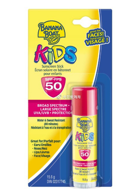 #amazon海外购# 美亚发货:Banana Boat 香蕉船 儿童防嗮棒15.6g*4支 94.68元。会员凑单免费直邮到手¥107,特别适合儿童敏感皮肤,用以保护完全暴露而易被日光损伤的皮肤部位,质地温和清爽,易涂抹,皮肤使用后无负担,防晒可达连续4个小时,并可以防汗、防水。点击购买