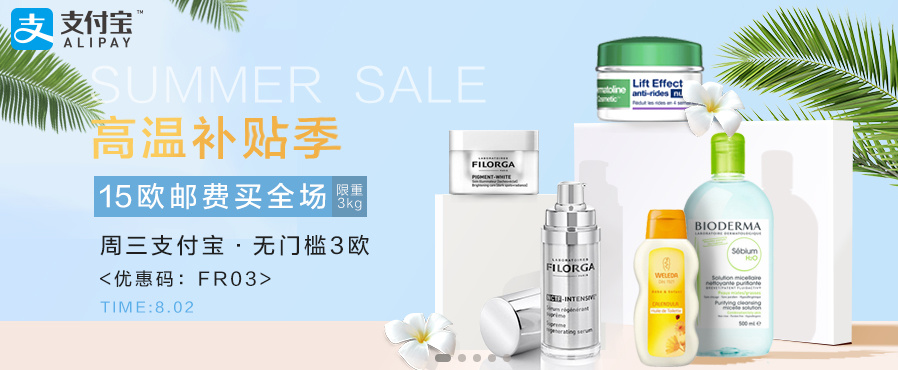 支付宝日,下单送无门槛优惠券,需用码:FR03。 高温补贴季15欧邮费买全场(限重3kg)!