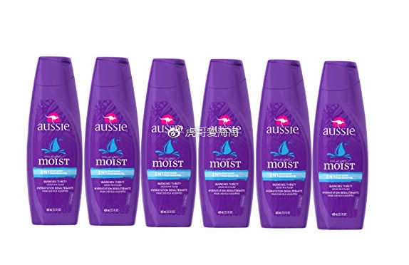 #亚马逊海外购#美亚直邮:Aussie 袋鼠 Moist 2-In-1 Shampoo柔润滋养二合一洗发水400ml*6瓶 ¥120.60 会员凑单直邮到手约¥135,含天然芦荟和荷荷巴油,配方温和、气味清新,有控油、保湿作用,柔润滋养发质。用于改善粗糙,受损发质,以及烫染后干燥受损问题,适合干性、中性发质。点击购买护发素点击购买