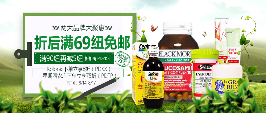 现有全场保健品、母婴用品折后满69纽即可享受免邮,限重2kg,满90纽使用优惠码:PDZK5再减5纽,更有Kolorex额外8折和星期四农庄额外7.5折,另有婴儿奶粉强势补货,包括大热的澳州A2 白金系列1段、3段包邮装也都有货。
