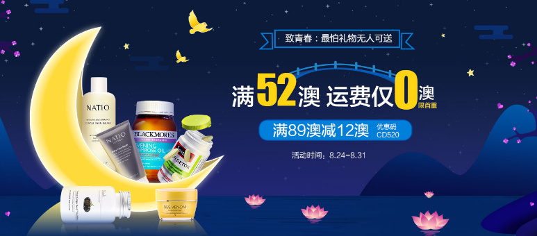 全场满52澳运费仅0澳(限首重),满89澳再减12澳,需用码:CD520,恋爱套装,单身爆款,只送女神,男神必备等多个专区好礼可选。