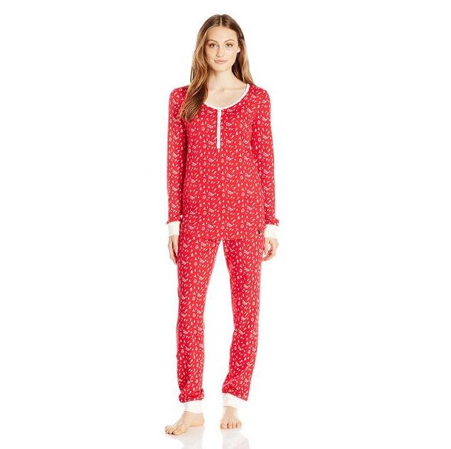 这款Tommy Hilfiger Thermal Pajama女士睡衣套装,采用60%棉混,40%聚酯纤维的混纺面料,柔软,透气性好,易洗速干;亨利领,无领带扣设计,袖口、裤脚有罗纹设计。