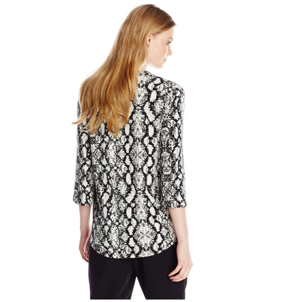 这款CK Printed Zip-Front 女印花T恤,七分绣设计,带袖扣;采用75%人造丝,混5%弹性纤维的混纺材质,手感柔软,轻薄顺滑,有弹性,舒适不紧绷;半拉链,干练利落。衣面是碎印花图案,好看霸气。