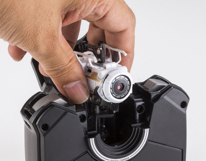 小小的机身可以折叠之后放入遥控器中充电,此时遥控器和飞机合体变成了一个数码相机!给孩子拿出去玩应该会成为小伙伴中间的风云人物。新型机还放弃了原来的红外线遥控,改成了2.4GHz无线电,配合内置陀螺仪,操控性应该ok。