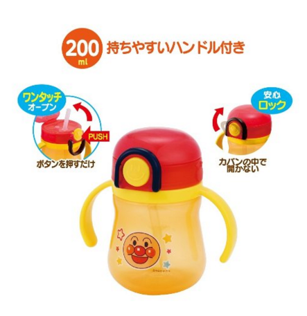 这款ANPANMAN 面包超人双柄吸管杯采用聚丙烯安全材质,不含BPA,体型小巧可爱。滑动开盖设计,可防止液体漏出。