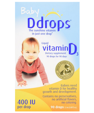 维生素D是健康成长的保证,特别是对骨骼的正常发育有至关重要的作用。这款 Baby Ddrops是从植物中提取的纯天然维生素D,无味无臭,不含任何防腐剂,未添加人工香精、色素。无小麦、无麸质,不含大豆,玉米,糖,牛奶和花生。用法:把Ddrops瓶盖打开,把瓶子完全倒过来、瓶口朝下,保持大约1-2秒钟(特殊瓶口设计,通常先出来的滴液会倒流回瓶子,再出来的滴液才会形 成一整滴滴下来),将一滴(含量400IU)维生素D滴在安抚奶嘴或妈妈乳头上,让宝宝吮奶嘴或乳头30秒种以上即可。