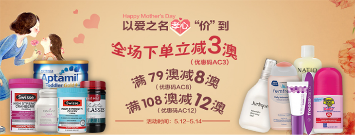 #包税直邮#【Amcal中文网】全场下单立减3澳,优惠码:AC3;满79澳减8澳,优惠码:AC8;满108澳减12澳,优惠码:AC12。活动截止到5月14日。