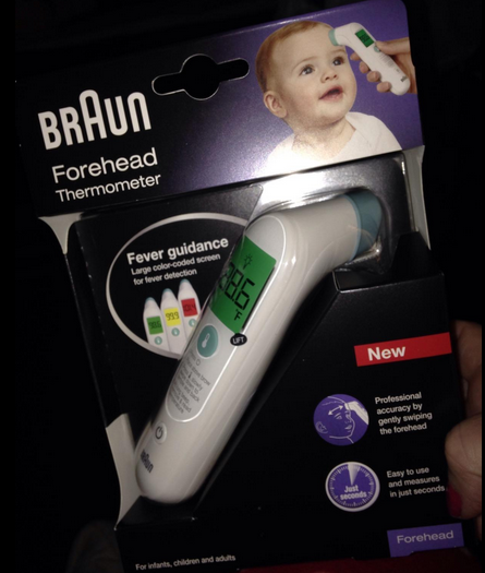 这款Braun 额头温度计,非侵入式测量,在宝宝额头温柔地一扫,数秒内即可读数。彩色数字显示屏读数。当宝宝额温偏高时 显示屏会由绿色变为黄色甚至红色。安全卫生,不用像耳温枪那样测一次换一只耳套,经济又环保。