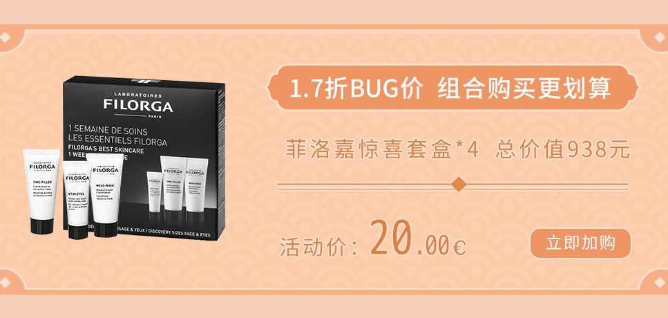 1.7折bug价!【beautinow】FILORGA菲洛嘉 套装4盒×(逆龄面霜7ml+360眼霜4ml+十全大补面膜7ml) 线上7折+独家95折码:HTBZQIU,限购2组!2组含税到手¥172/组。相当于半价入眼霜正装再送8个小样!凑单满88欧包邮更低!