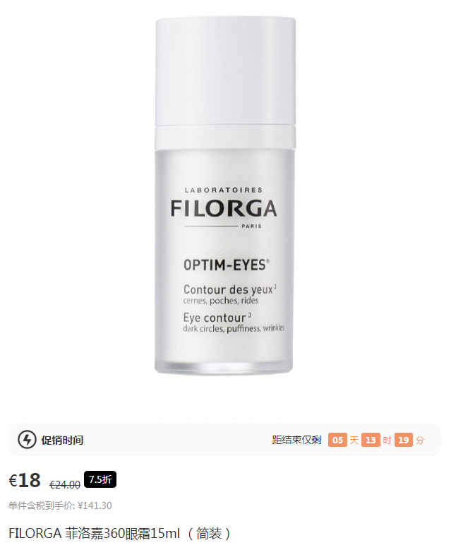 含税神价!【beautinow】FILORGA菲洛嘉 360眼霜15ml(简装)参与2件88折+凑单新人满60-5欧券,低至¥118!满88欧包邮包税!去皱、去黑眼圈和去眼袋等三重功效。戳: