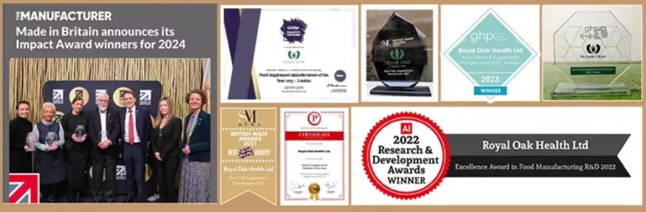 Royal Oak Health皇家橡树是英国本土的老牌高端补剂,98年创立到现在快30年了,还是英国健康食品制造商协会的会员,所有产品都在英国GMP认证工厂生产,原料有机认证、生产质控、第三方独立检测,多次获得大奖,符合英欧高标准,品控这块很放心。