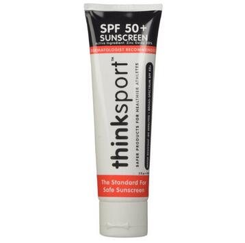 thinksport SPF 50 Plus Sunscreen, 3 Ounce (Packaging May Vary),今天这款Thinksport物理防晒霜90g,在2010~2013年被美国EWG评为最高的婴儿、沙滩和运动防晒霜,不含有害物质,主要有效成分就是氧化锌,使用非常清爽不油腻,防晒指数高达SPF 50+,并且防水效果出色,很适合在进行户外运动以及游泳时使用。