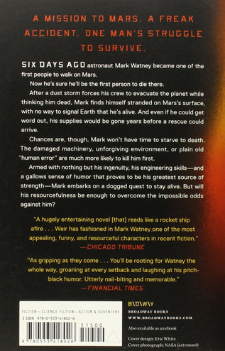 自打能阅读起,安迪就在父亲的藏书中阅遍美国科幻黄金时期三巨头:海因莱因、克拉克和阿西莫夫的作品。他喜欢坐下来,想象一项任务,从开始到结束,尽可能多 地补充细节。十几岁的时候,他梦想成为一个作家,但又不想陷入财务危机,所以选择了学习计算机编程。他酷爱解决问题,把研究轨道动力学作为一种业余爱好。