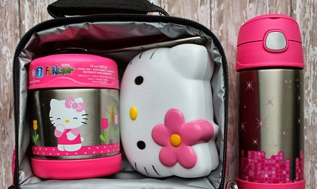 这款Thermos Hello Kitty主题儿童午餐包,采用不含PVC的安全材质,内里为聚乙烯泡沫,有不错的保温效果。 尺寸约24*19*12.7cm,放下一餐饭是没有问题的。加厚舒适提手,不会勒手。双层材质,如果不小心掉落,有一定的缓冲作用。外层有Hello Kitty主题的卡通图案,家里小公主一定会喜欢。