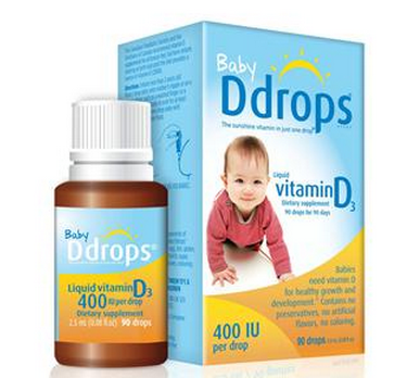 Baby Ddrops® ESP婴儿维生素d3滴剂,是加拿大儿科医生首推的维生素D滴剂,纯天然织物提取,无臭无味,不含人工色素、香精、防腐剂等,不含小麦、牛奶、大豆、花生等过敏成分。可用于新生儿补充维生素D,帮助宝宝吸收钙质,促进生长和骨骼钙化。婴儿出生第7~10天,母乳喂养的婴儿每天都要添加400单位维生素D,预防因缺少VD引发的佝偻病。