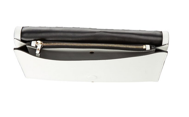 这款kate spade new york Lillian Court Neva Clutch 凯特丝蓓 手拿包,是2015年新款,采用光滑的真皮材质,所有五金件均经过14K镀金处理,翻盖磁性暗扣开合。亮点在于包身的几何镂空设计,打破了包包的沉闷无趣,浓浓的巴洛克风,立体感和空间感十足,浪漫又优雅。外形尺寸为16*30*2cm,包内设有一个拉链袋,空间也不小,颜值高,是一款气质清新的日用小包。