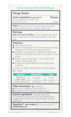 Little Remedies儿童肠胃胀气果味滴剂的主要成分为simethicone(二甲硅油),它可以将腹中小气泡凝聚在一起并结合成更大的气泡,使它们更容易借着打隔或放气(屁)作用将气体排出,从而解决宝宝胃肠胀气问题。一般几分钟即可见效。
