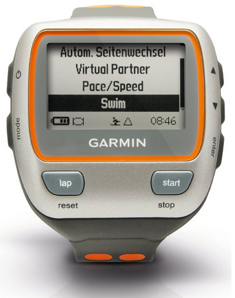 这款Garmin Forerunner 310XT 是为铁人三项运动而设计的,其最大的特色就是使用时间大大增加—— 700毫安的电池可以保证20小时的工作时间,并且可通过多种方式进行充电,具备50米防水性能,在游泳时亦可佩戴。与405的触摸屏幕不同,这款采用的是实体按键,在运动中操作更加方便一点。内置SiRF Star III GPS芯片,可以精确的记录运动时的各项数据。