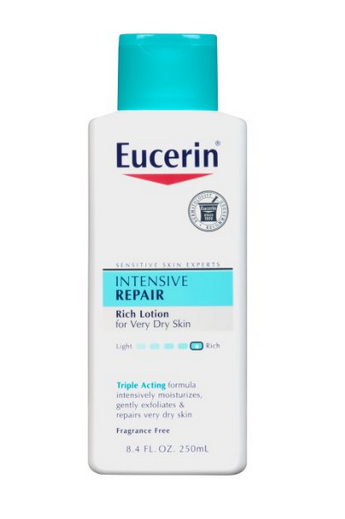 优色林 Eucerin 干性皮肤密集修复润肤乳液专为干性皮肤研制,采用专利蕴含天然保湿成分配方,包括矿物油、甘油、羊毛脂和阿尔法羟基酸(AHA)等成分,可以有效滋润、修复肌肤,并提供长久保湿效果。
