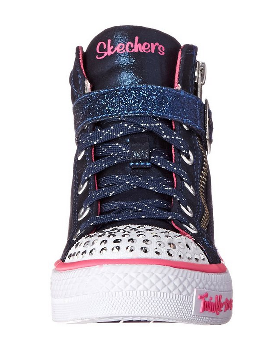Skechers Kids Twinkle Toes Shuffles-Heart and Sole Light-Up Sneaker (Little Kid/Big Kid),今天这款Skechers 斯凯奇儿童高帮帆布鞋,帆布剪裁和花边设计,适合爱美的小女生,鞋尖还有铆钉元素,让整双鞋看起来更具时尚感。可以使用拉链,也可使用鞋带。