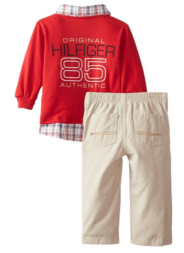 这款TOMMY HILFIGER Polo 男童Polo衫两件套,采用60%纯棉混纺材质,格纹假两件套设计,胸前有刺绣,呼应背后印花,搭配长裤,非常实用。可机洗,方便清理。