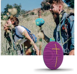 罗技 UE Roll 无线蓝牙音箱主打户外便携防水,小飞碟的造型,巴掌大小,可以很方便地单手持握,符合IPX7标准防水,官方宣称侵入液体1米可持续30分钟,即使是轻度的跳水和短时间浮潜也可有效应对。此外UE Roll的背壳采用抗冲击橡胶材料制成,并且表层还有耐污处理流程的等离子镀层,可有效保证坚固性和表面清洁性。两个硕大的音量调节键,在径向占据了正面的80%以上,所以绝对不用担心晚上黑灯瞎火的时候摸不到音量键,同时按下“音量加”和“音量减”,它就会告诉你剩余电量。